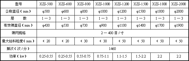 XZS系列旋振筛是在S49系列旋振筛的基础上,吸收国内外先进技术,并采用先进的加工工艺而设计的高精度筛分过滤机械,它是以立式振动电机或专用激振器为振动源,立式振动电机(或激振器)上、下端装有偏心重锤,可产生水平、垂直、倾斜的三次元运动,通过调节上、下偏心重锤的相位角,改变物料在筛面上的运动轨迹以达到筛分各种物料的目的。该产品适用于任何粉、粒、液的筛分和过滤的行业。广泛用于化工、医药粉、液、涂料、颜料、化妆品、油脂、树脂、陶瓷浆、粘土泥浆、生石灰、耐火材料粉末,冶金粉末、电磁粉末、研磨粉、果汁、饮料、食糖、食盐、味精、调料、奶粉、淀粉、面粉、米粉、碳粉、石墨粉、锰粉、碳酸锂、助溶剂、灭火剂以及环保行业的污水、废水处理的工艺过程中的筛分、过滤。