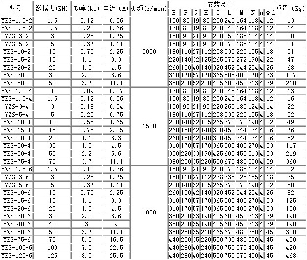 YZS/YZD系列振动电机技术参数